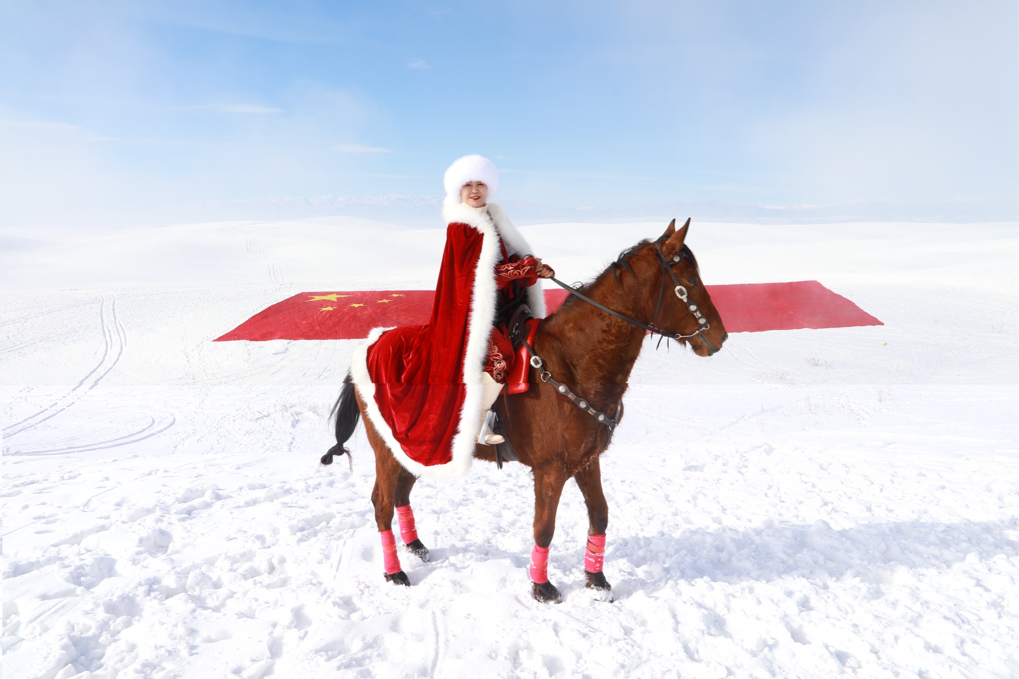 摄影师海沙尔又一次来到天马湖畔。他架起无人机,看着屏幕里的茫茫雪原,恍惚间,那个身披红色斗篷的身影仿佛又出现了mdash;mdash;她策马奔腾,雪花飞扬,像一团火,燃烧在这片她深爱的土地上。